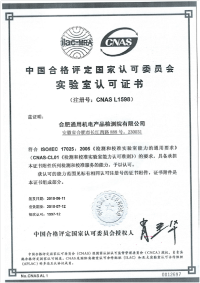 實(shí)驗(yàn)室CNAS認(rèn)可證書