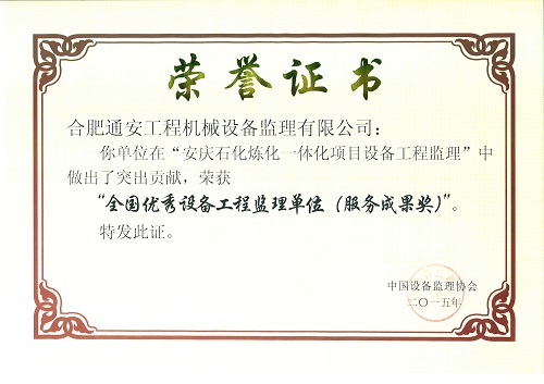 第三屆全國(guó)優(yōu)秀設(shè)備工程監(jiān)理單位(服務(wù)成果獎(jiǎng))