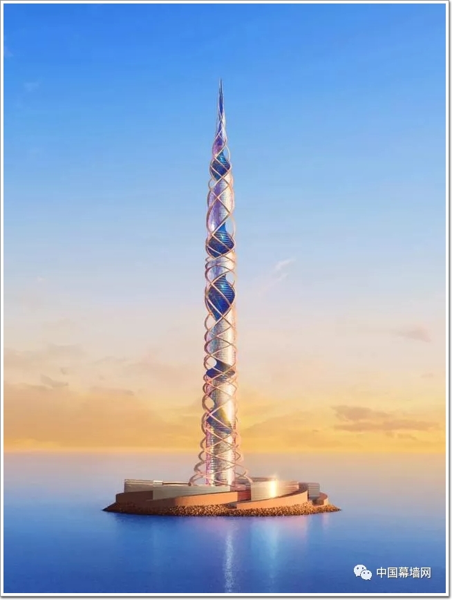 塔樓采用復雜多變的“DNA”螺旋狀結構,呈現(xiàn)“生命、科技與自然共生”的理念,建筑流線型的曲線,也減少了空氣阻力,最大程度地降低高度給建筑帶來的風險。