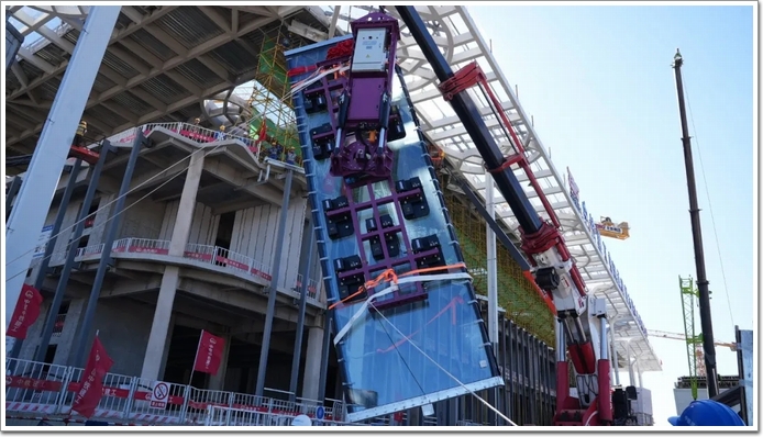 中國幕墻網(wǎng)ALwindoor.com獲悉:由北投集團(tuán)全過程代建的北京城市副中心圖書館項目,幕墻工程首塊超大玻璃面板完成吊裝,從而標(biāo)志著項目正式進(jìn)入幕墻面板的流水施工階段。該項目的幕墻玻璃施工開創(chuàng)了“最重”玻璃板(詞條“玻璃板”由行業(yè)大百科提供)塊,“最新”互為肋玻璃支撐結(jié)構(gòu),“最大”幕墻吊裝吸盤三項“幕墻之最”。