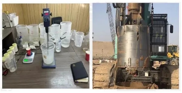 項(xiàng)目灌注樁施工最大深度101.1米,基于巨厚純砂層地質(zhì)條件,嚴(yán)苛的環(huán)境保護(hù)要求和高強(qiáng)度的進(jìn)度挑戰(zhàn),項(xiàng)目部開(kāi)展新型環(huán)保材料Polymer泥漿的改良創(chuàng)新,選擇環(huán)保聚合物泥漿順利通過(guò)業(yè)主環(huán)評(píng)審批,并通過(guò)專業(yè)人員高維度對(duì)接生產(chǎn)廠家,多次調(diào)整配比,最終實(shí)現(xiàn)了鉆孔過(guò)程中漿液性能穩(wěn)定,鉆渣快速沉降的先進(jìn)工藝,避免了二次清孔,極大地縮短了工期,實(shí)現(xiàn)工程的安全環(huán)保與經(jīng)濟(jì)高效雙重保障。在良好實(shí)現(xiàn)NEOM新城建設(shè)環(huán)保要求同時(shí),為進(jìn)一步促進(jìn)綠色、低碳、可持續(xù)發(fā)展注入中國(guó)力量。
